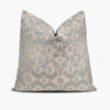 An iridescent ikat motif that dances in the light, this luxurious throw pillow features Oncilla Mist fabric in metallic, silvery tones. The back side of the pillow is finished in a cotton-blend lounge gray fabric with a light sheen.