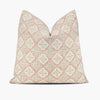 A muted quatrefoil motif in dusty pink and taupe, this lovely pillow cover features the Pamina Sorbet fabric from Kravet. Reverses to a soft linen-blend fabric in nickel gray.