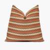 A woven mosaic, this luxurious pillow cover features a gorgeous chevron motif in earthy shades of brick red, brown, and deep amber. Reverses to a soft linen-blend fabric in nickel gray.