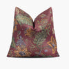 An exotic scene in shades of burgundy, lavender, and cinnamon, this pillow cover features a glazed cotton fabric from Mill Creek Raymond Waites. Reverses to a cotton fabric in cinnamon.