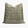 Moss green velvet throw pillow with a geometric hexa-diamond motif
